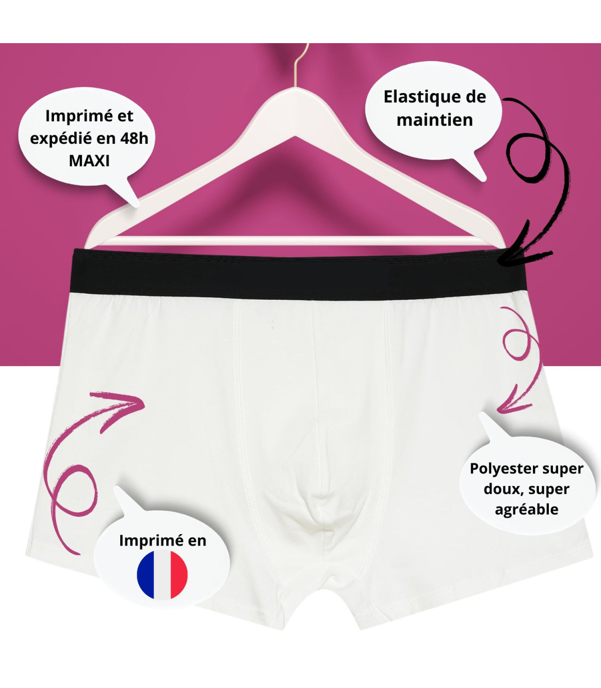 Oui, on a pensé aux "mâles" ! Vous apprécierez non seulement la qualité de l'impression, qui résiste bien aux lavages, mais surtout le côté tout doux et très agréable à porter pour ce boxer unique. Sa matière élastique de haute qualité lui permet de s'adapter parfaitement à toutes les formes de votre chéri, garantissant un confort optimal tout au long de la journée. C'est l'accessoire parfait pour ajouter une touche d'espièglerie à sa garde-robe intime.