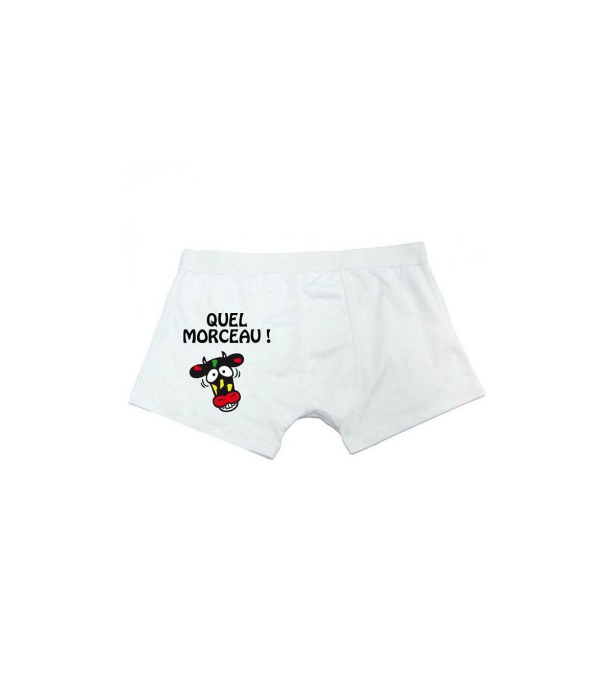 Ce boxer fantaisie arbore un motif de tête de vache souriante accompagné de la plaisanterie coquine "Quel morceau !". C'est le cadeau idéal pour :