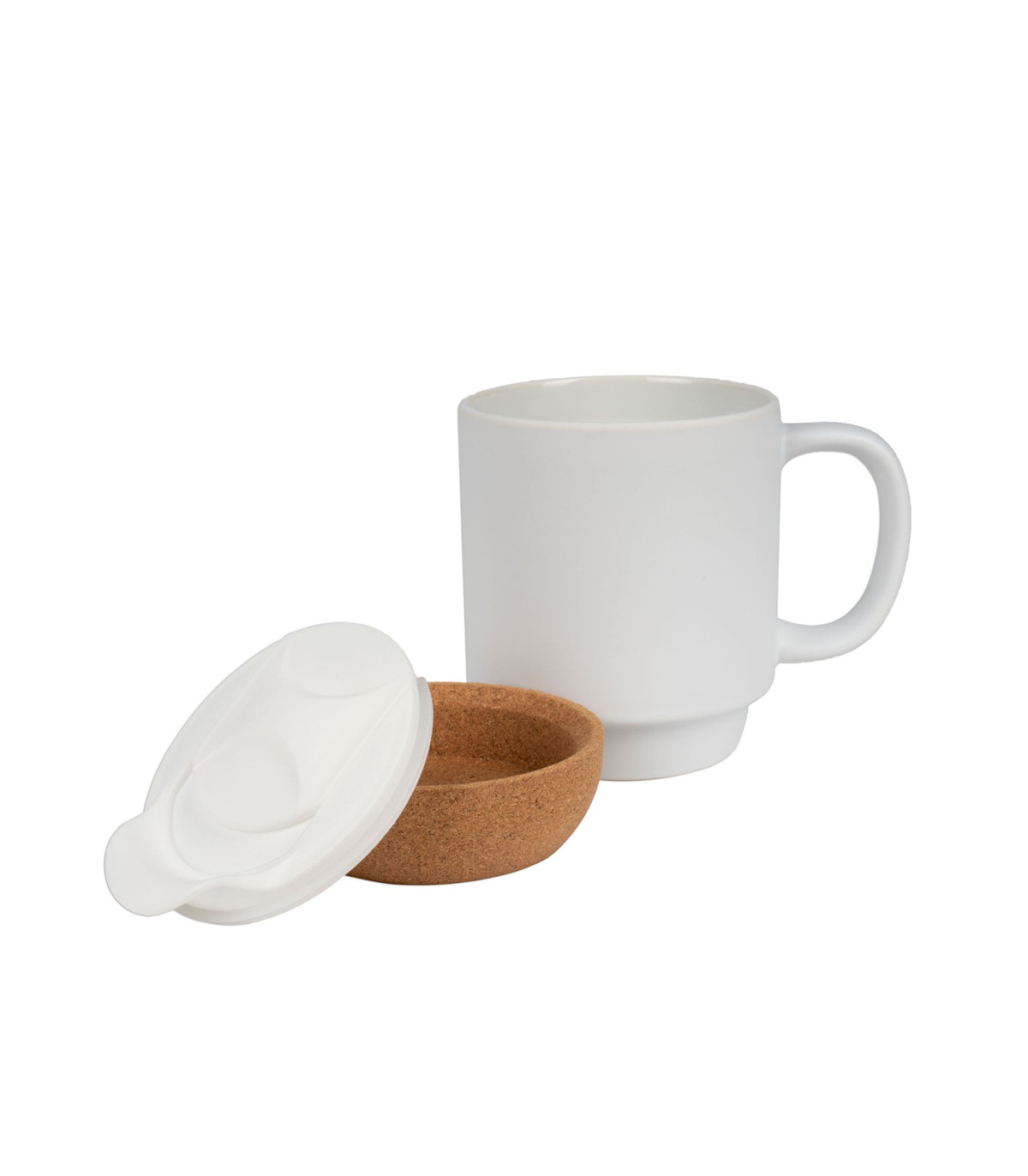 Conçu pour l'excellence, ce mug de 10 cm de hauteur allie une céramique blanche de haute qualité à une base en liège naturelle. Le liège isole non seulement vos mains de la chaleur, mais protège également vos surfaces. Le couvercle blanc hermétique est un atout majeur : il garantit que votre boisson (thé, café, infusion) reste chaude plus longtemps, idéal pour les journées chargées au bureau ou les longues sessions de télétravail.