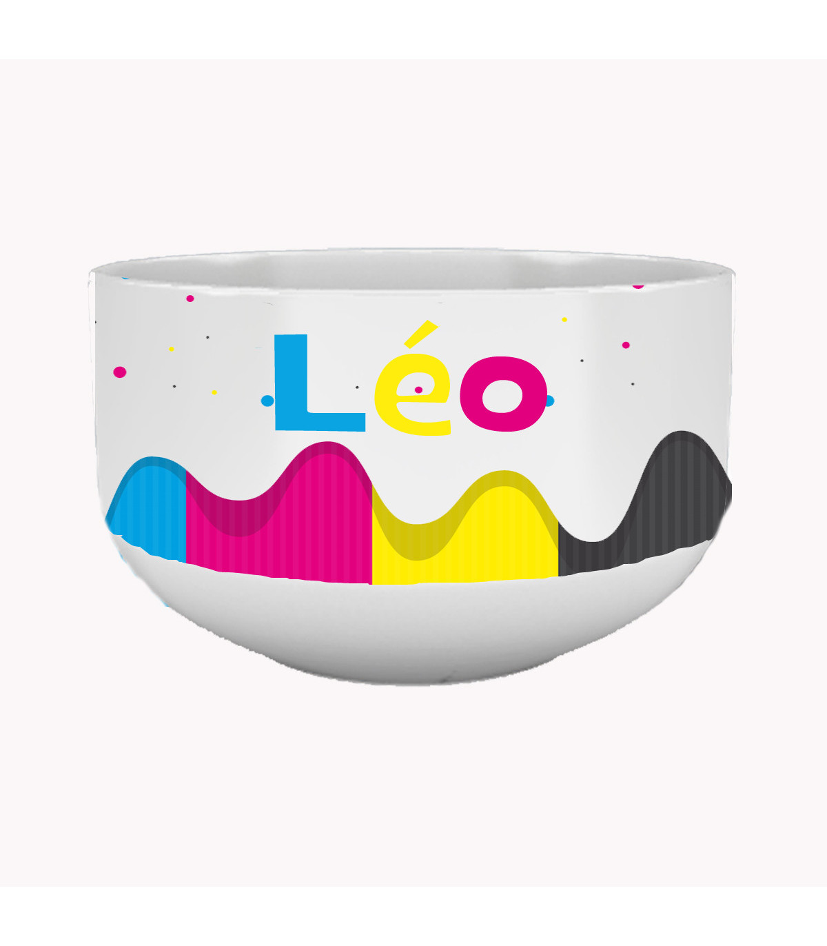 Un prénom seul imprimé sur le bol sera magnifique avec de grandes lettres colorées. Mixez les couleurs pour un rendu dynamique.