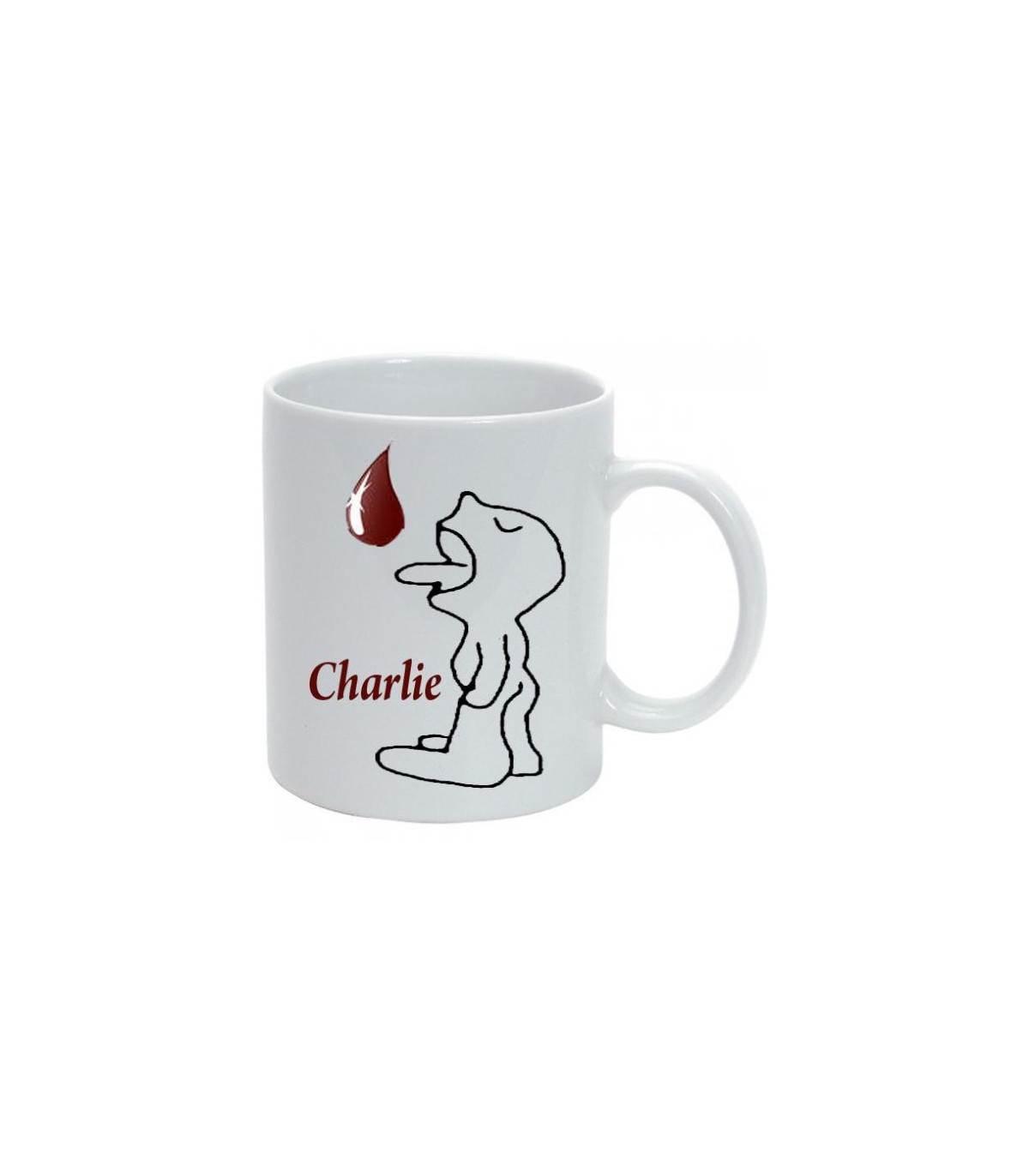 • Un mug amusant pour capturer la goutte : le cadeau original à personnaliser avec un prénom.