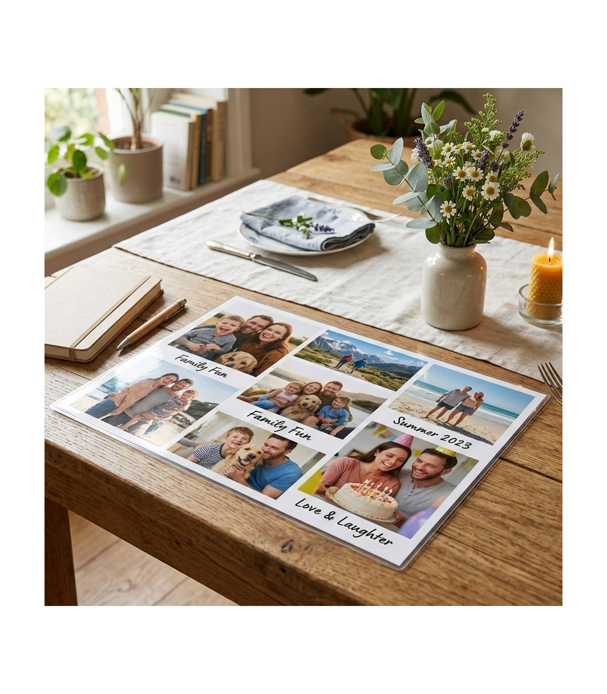 N'attendez plus pour transformer votre quotidien avec une touche personnelle et pratique. Commandez votre Sous-Main Plastifié Personnalisé et embellissez votre espace avec vos plus belles photos !