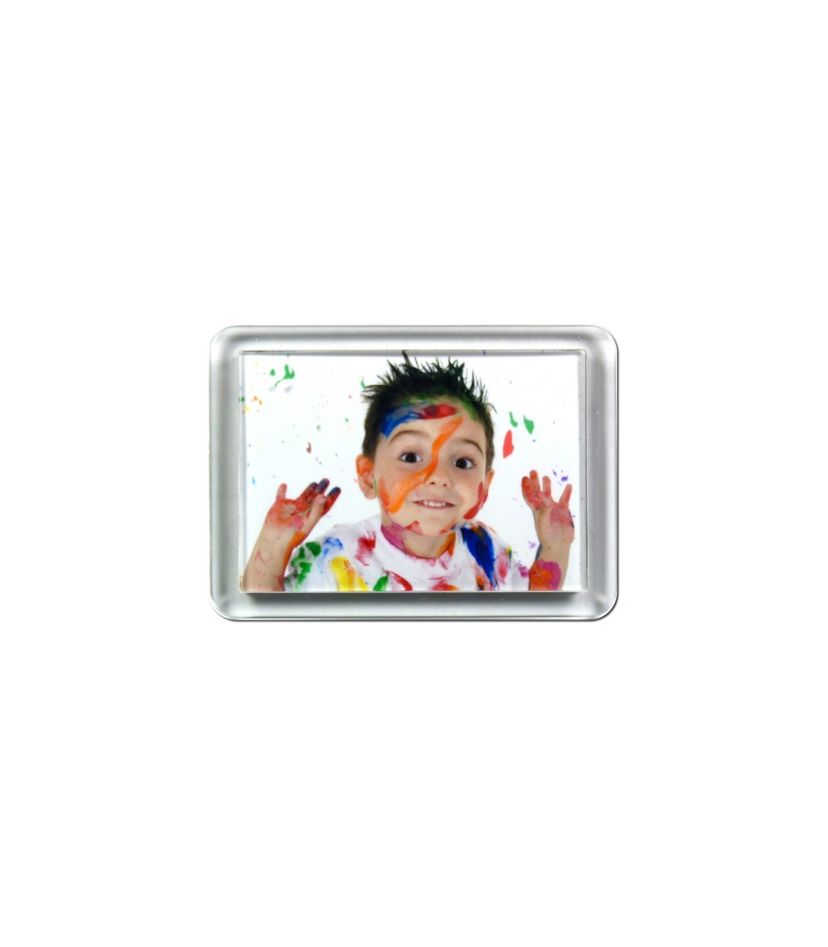 Le magnet photo, c'est le petit objet tout simple, mais c'est un superbe cadeau personnalisé car il est très accessible au niveau tarif. Vous le glissez dans un joli emballage, et vous le déposez sur une assiette au moment du repas de famille ou d'un événement, et tout est joué ! Le magnet photo est transparent, en matière plastique et mesure 5x7 centimètres. Il est conçu pour être collé partout, sur toute surface acceptant un aimant.