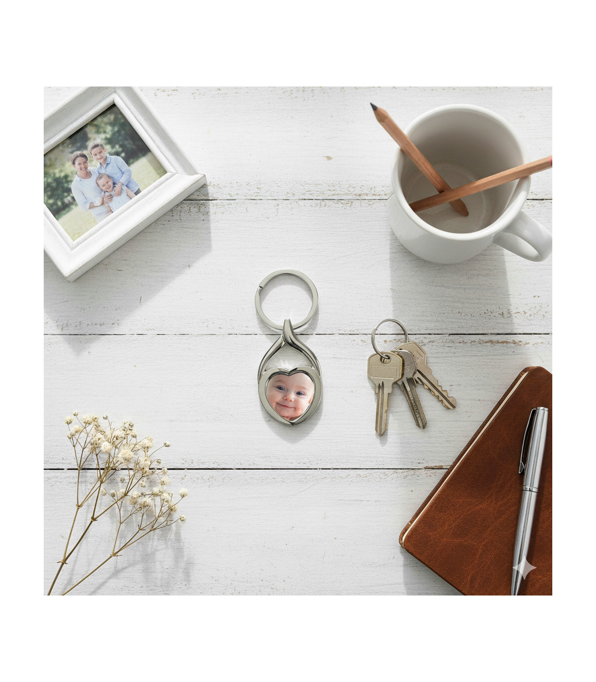 Dès qu'on aperçoit un cœur, l'amour nous vient à l'esprit, n'est-ce pas ? Offrir ce porte-clés photo cœur, c'est envoyer un message fort. C'est un geste d'affection qui touche en plein cœur, que ce soit pour votre partenaire, vos enfants, vos parents, un ami cher ou même votre compagnon à quatre pattes.