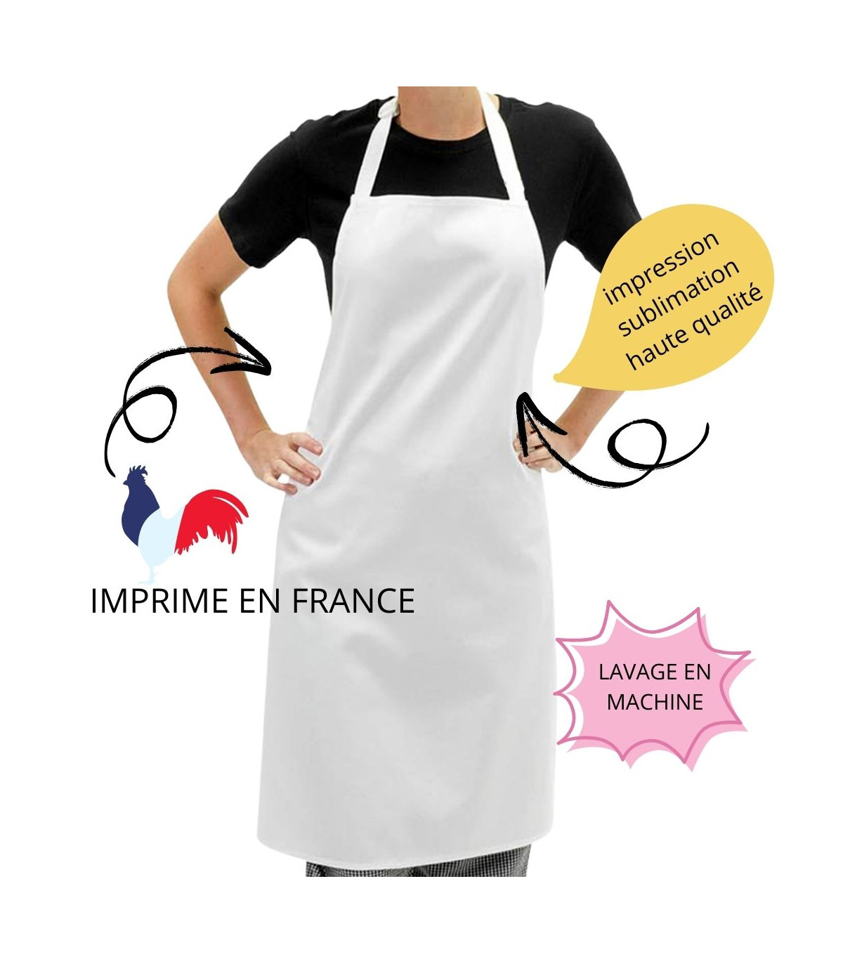 Tablier blanc premium 350 g - 100 % polyester - passe par le cou et sangle dans le dos