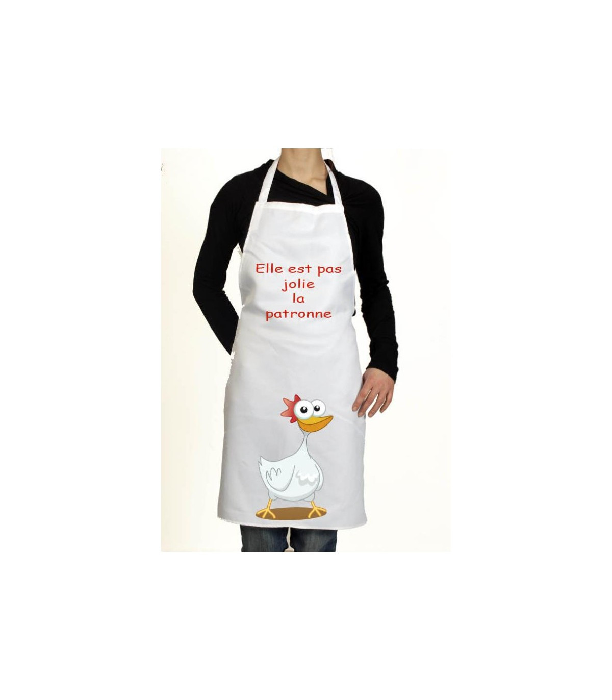 Tablier de cuisine humoristique pour femme "La Patronne" (texte : "Elle est pas jolie la patronne ?"). Cadeau original et pas cher ,...